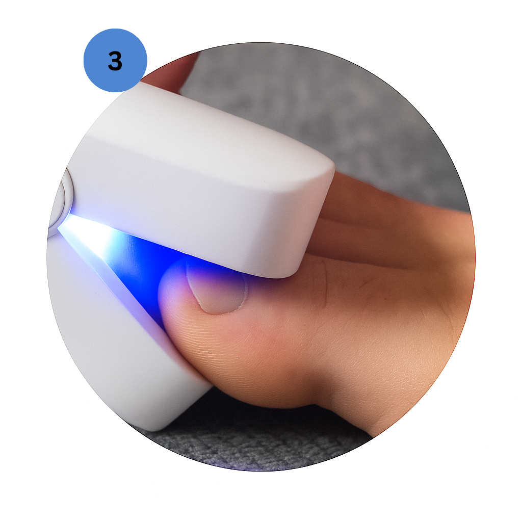 L’appareil se place sur un ongle à la fois pour un traitement ciblé. Pour plusieurs ongles, répétez le processus successivement.